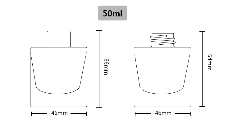 50ml Square glass aroma diffuser bottle, made of recycled thick clear glass. Sturdy, extremely clear, solid, heavy bottom, glass bottle with stopper and cap. Always popular using at home or office.